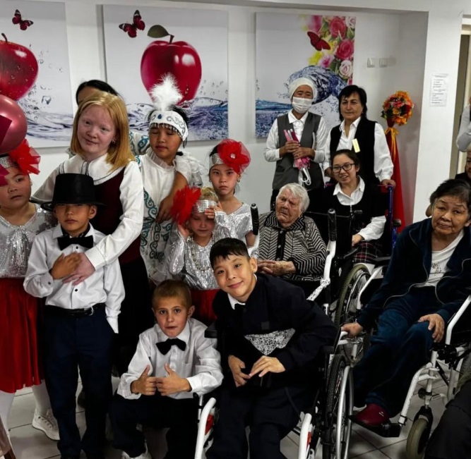 1 қазан - Халықаралық қарттар күні мерекесіне орай, мектеп оқушылары ауданымыздағы №3 Арнаулы әлеуметтер ұсыну орталығына барып "Қариясы бар ел-қазынасы бар ел" тақырыбында іс-шара өткізді.