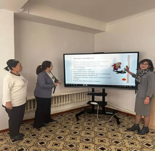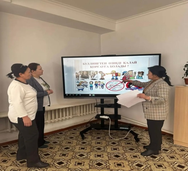 Мақсаты: Оқушылар арасында кездесетін буллинг, кибербуллинг, зорлық-зомбылықтың алдын алу. Оқушыларға буллингтің не екенін, оның қандай түрлері бар екенін және айырмашылықтарын түсіндіру, буллингтің салдарынан туындайтын қиыншылықтардың алдын алу.